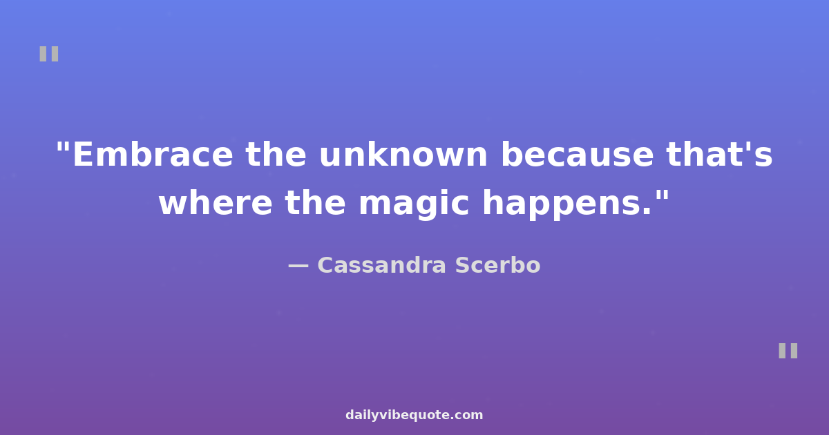 "Embrace the unknown because that's where the magic happens."