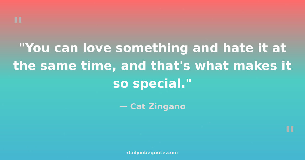 "You can love something and hate it at the same time, and that's what makes it so special."