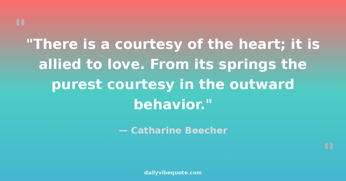 "There is a courtesy of the heart; it is allied to love. From its springs the purest courtesy in the outward behavior."