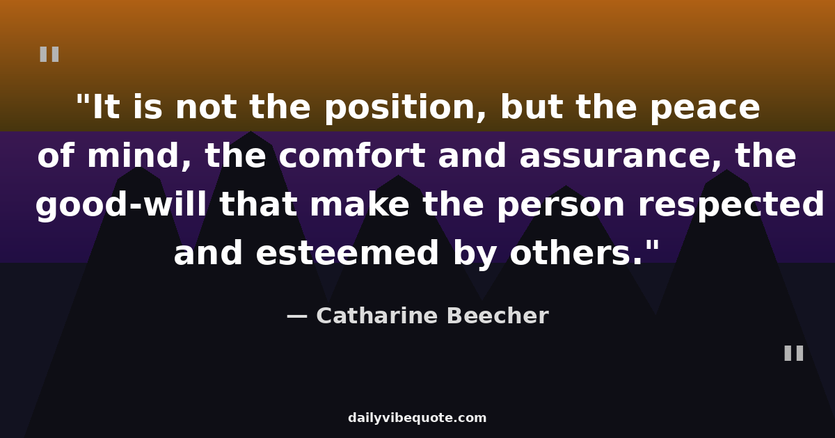 "It is not the position, but the peace of mind, the comfort and assurance, the good-will that make the person respected and esteemed by others."