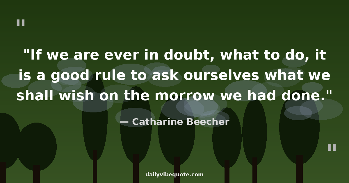 "If we are ever in doubt, what to do, it is a good rule to ask ourselves what we shall wish on the morrow we had done."