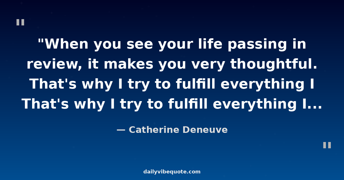 "When you see your life passing in review, it makes you very thoughtful. That's why I try to fulfill everything I start because what you have halfway done is never much fun."