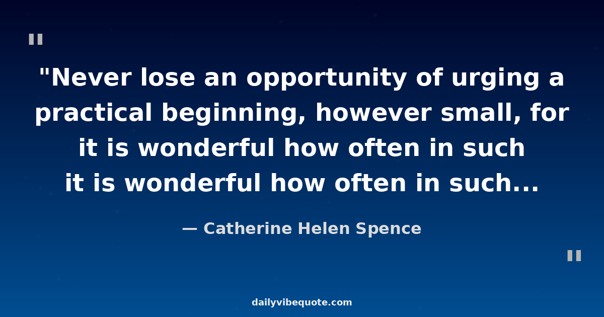 "Never lose an opportunity of urging a practical beginning, however small, for it is wonderful how often in such matters the mustard-seed germinates and roots itself."