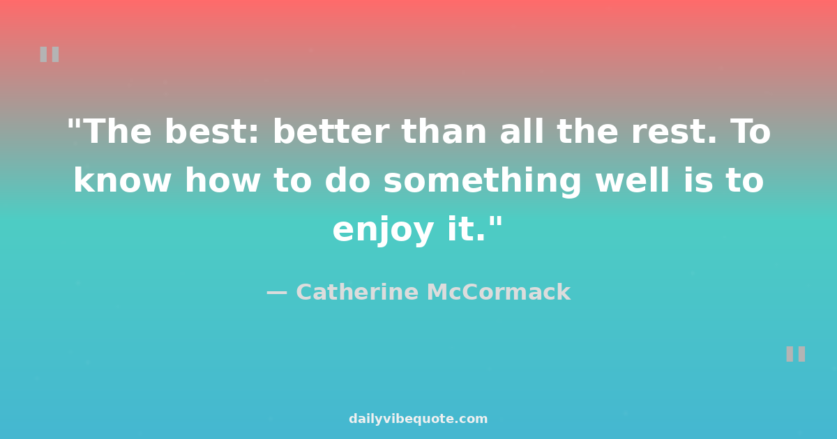 "The best: better than all the rest. To know how to do something well is to enjoy it."