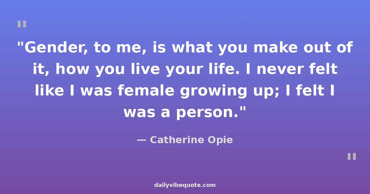 "Gender, to me, is what you make out of it, how you live your life. I never felt like I was female growing up; I felt I was a person."