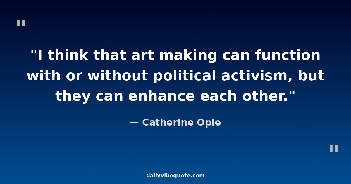 "I think that art making can function with or without political activism, but they can enhance each other."