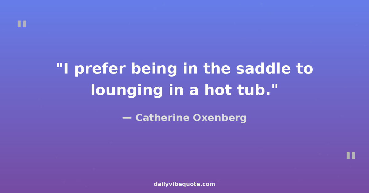 "I prefer being in the saddle to lounging in a hot tub."