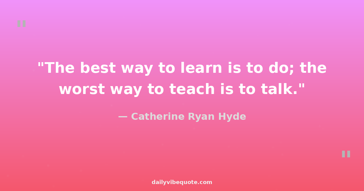 "The best way to learn is to do; the worst way to teach is to talk."