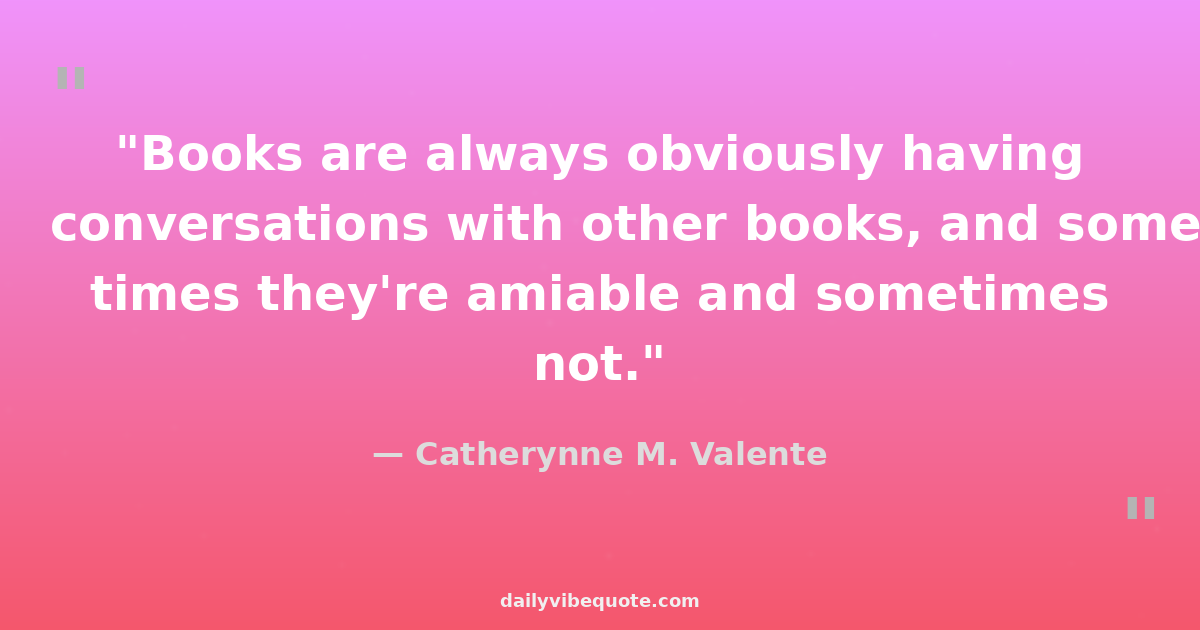 "Books are always obviously having conversations with other books, and some times they're amiable and sometimes not."
