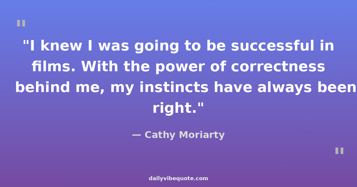 "I knew I was going to be successful in films. With the power of correctness behind me, my instincts have always been right."