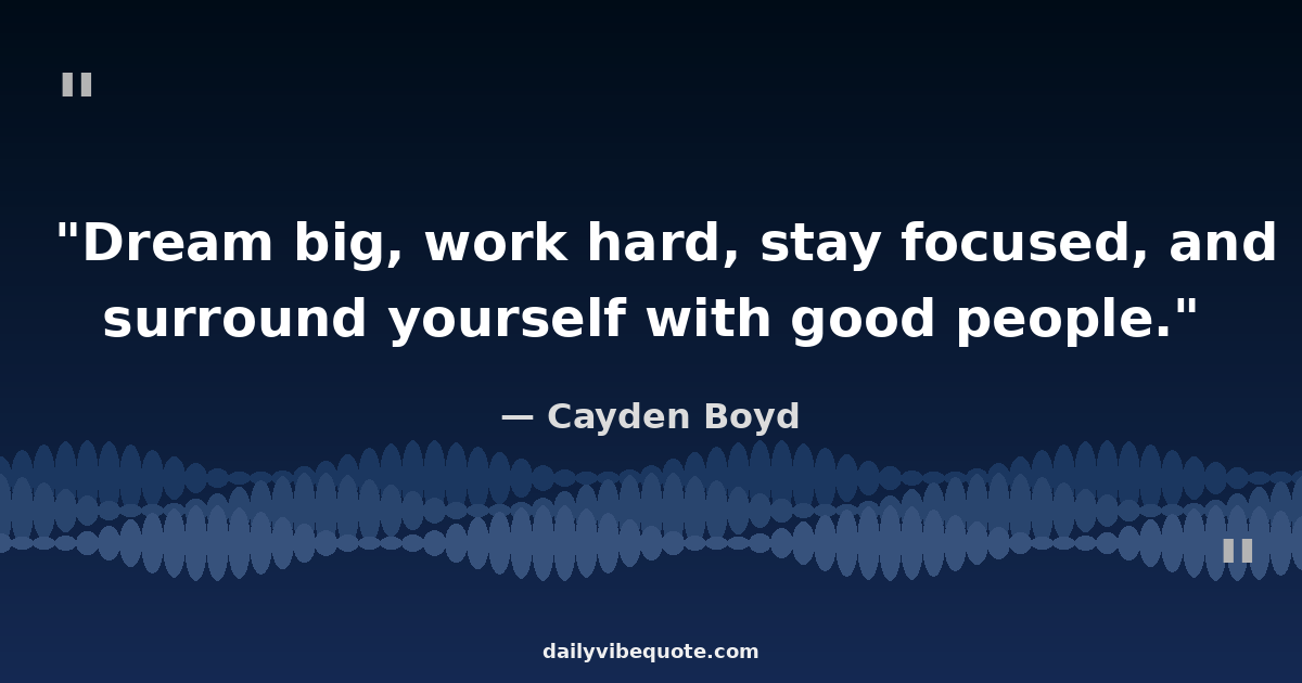 "Dream big, work hard, stay focused, and surround yourself with good people."