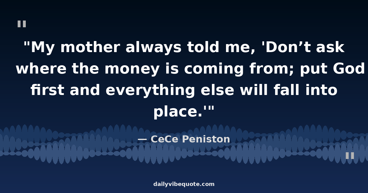 "My mother always told me, 'Don’t ask where the money is coming from; put God first and everything else will fall into place.'"