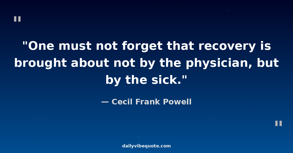 "One must not forget that recovery is brought about not by the physician, but by the sick."