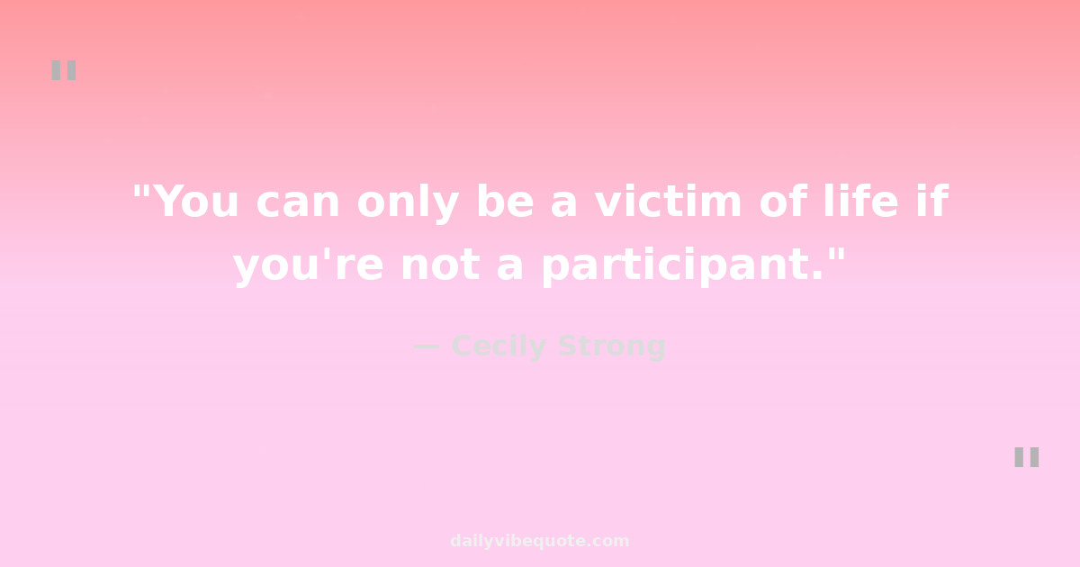 "You can only be a victim of life if you're not a participant."