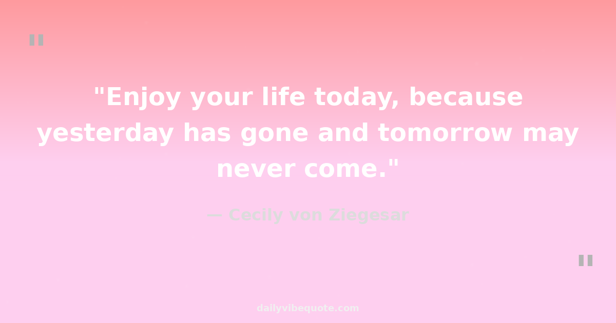 "Enjoy your life today, because yesterday has gone and tomorrow may never come."