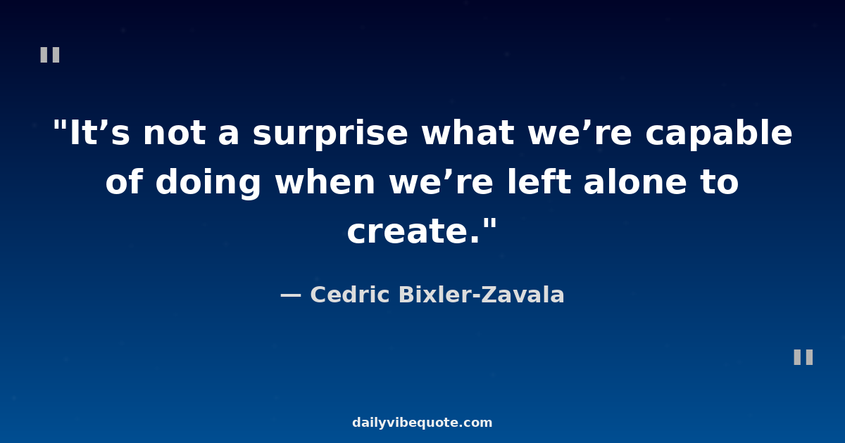 "It’s not a surprise what we’re capable of doing when we’re left alone to create."