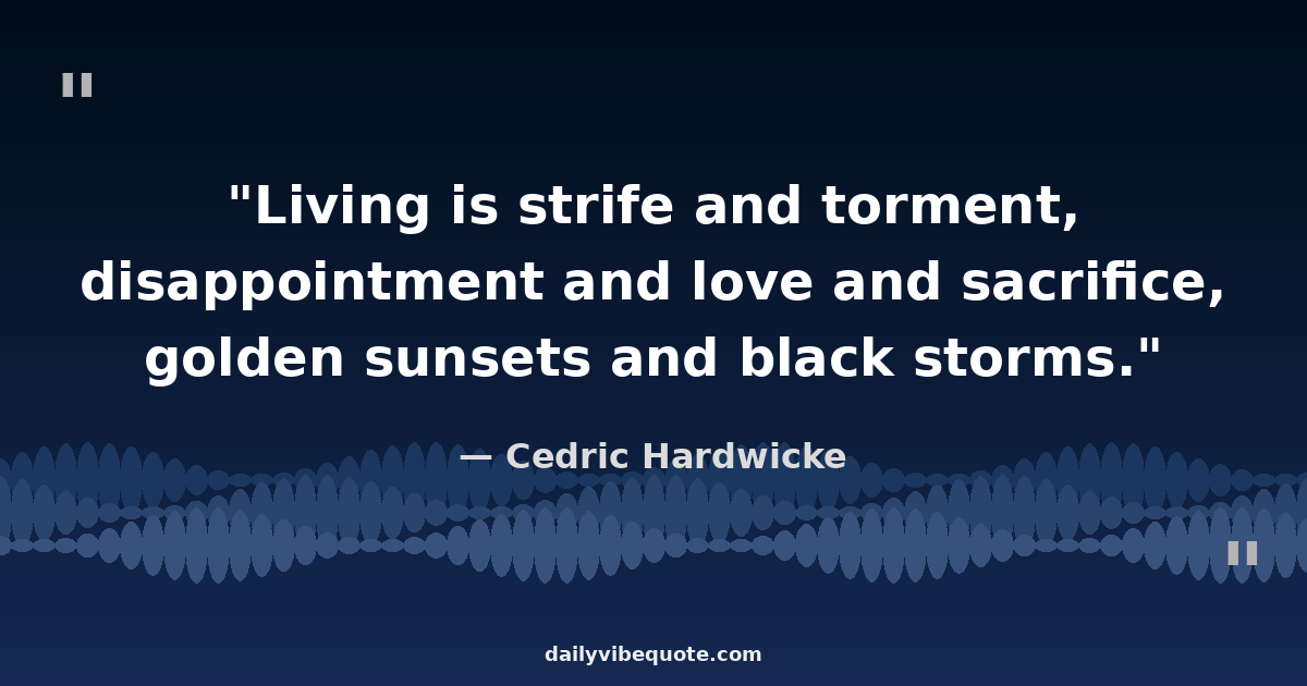 "Living is strife and torment, disappointment and love and sacrifice, golden sunsets and black storms."