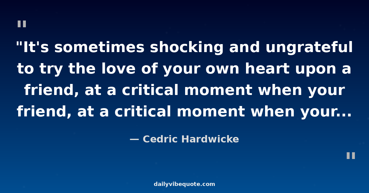 "It's sometimes shocking and ungrateful to try the love of your own heart upon a friend, at a critical moment when your own judgement is equally clouded and your own interest most involved."