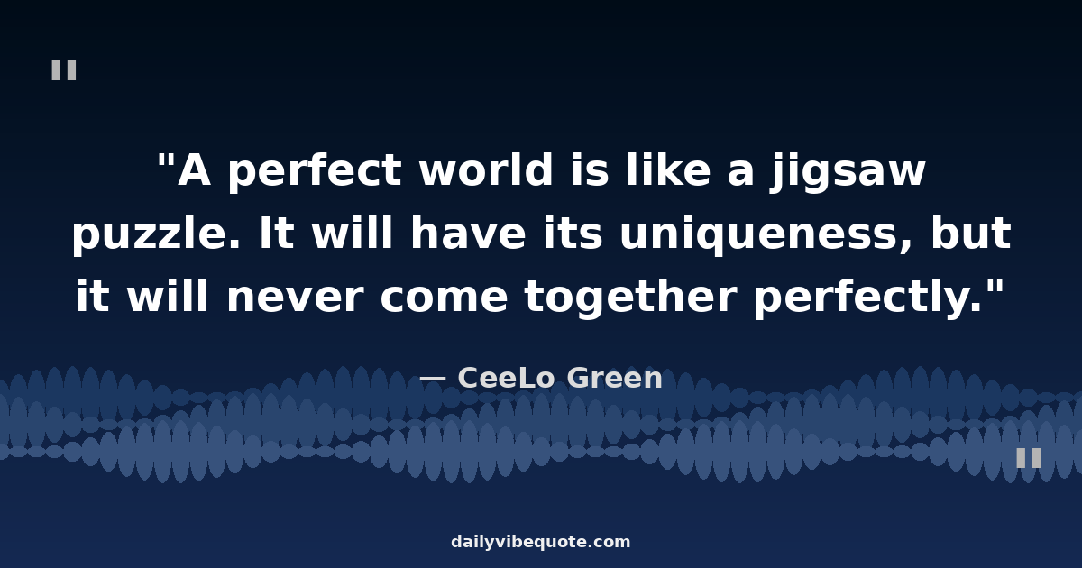 "A perfect world is like a jigsaw puzzle. It will have its uniqueness, but it will never come together perfectly."