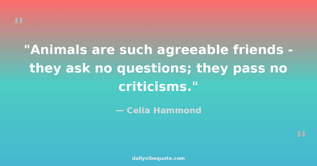 "Animals are such agreeable friends - they ask no questions; they pass no criticisms."