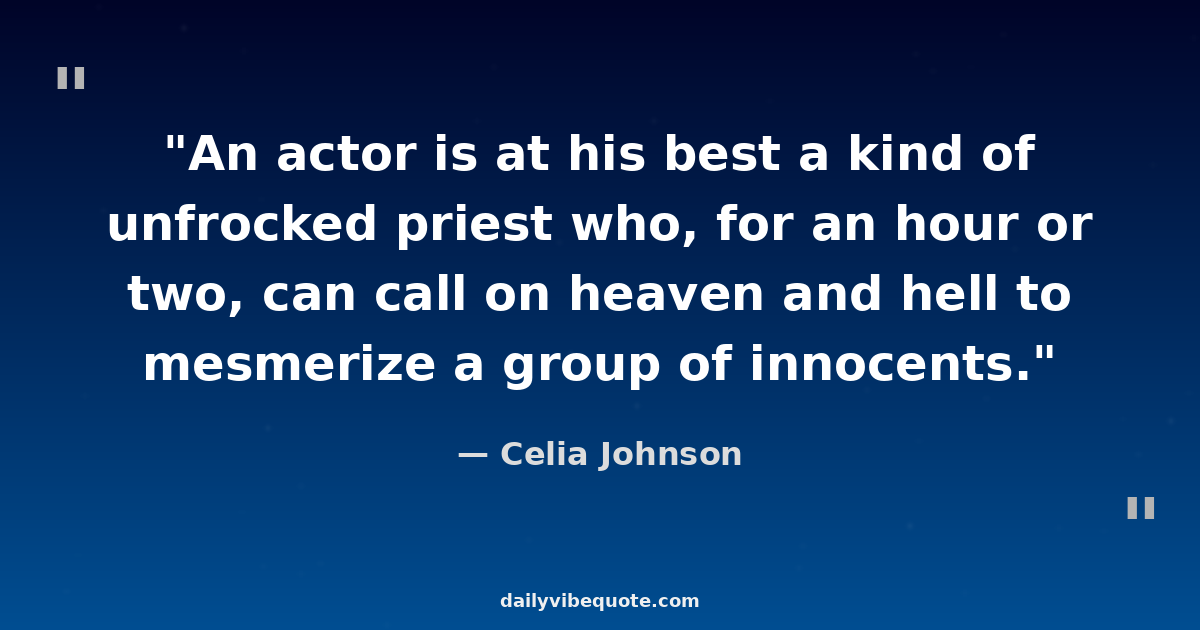 "An actor is at his best a kind of unfrocked priest who, for an hour or two, can call on heaven and hell to mesmerize a group of innocents."