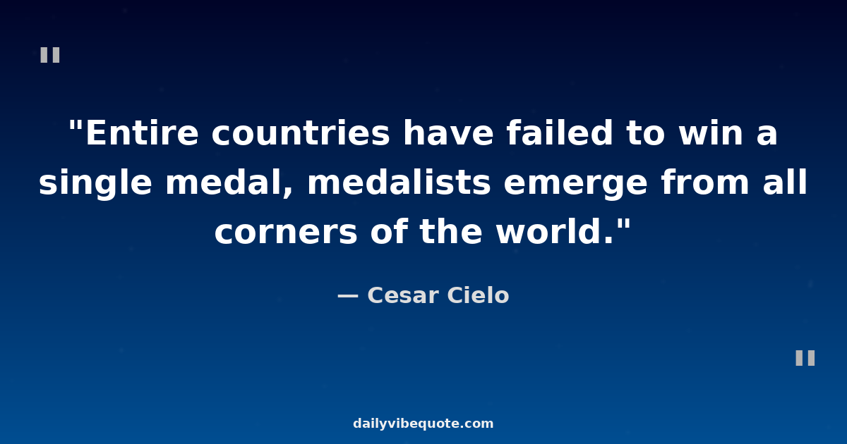 "Entire countries have failed to win a single medal, medalists emerge from all corners of the world."