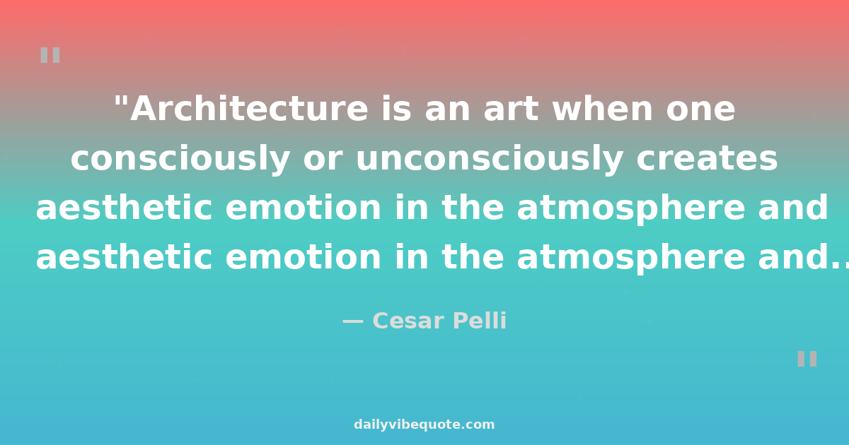 "Architecture is an art when one consciously or unconsciously creates aesthetic emotion in the atmosphere and when this environment produces well-being."