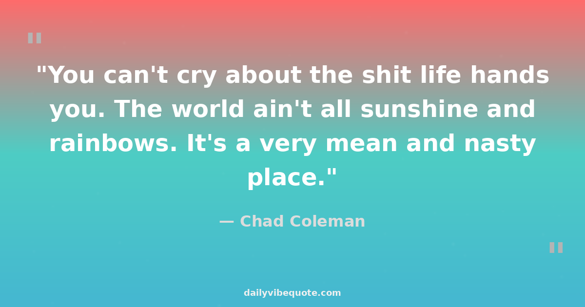 "You can't cry about the shit life hands you. The world ain't all sunshine and rainbows. It's a very mean and nasty place."