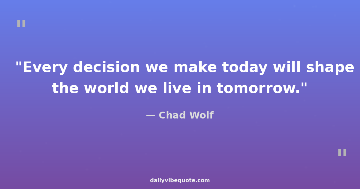 "Every decision we make today will shape the world we live in tomorrow."