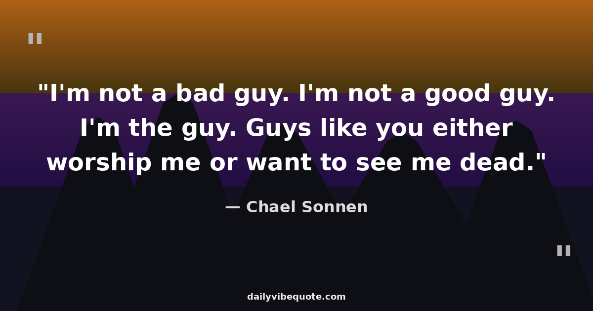 "I'm not a bad guy. I'm not a good guy. I'm the guy. Guys like you either worship me or want to see me dead."