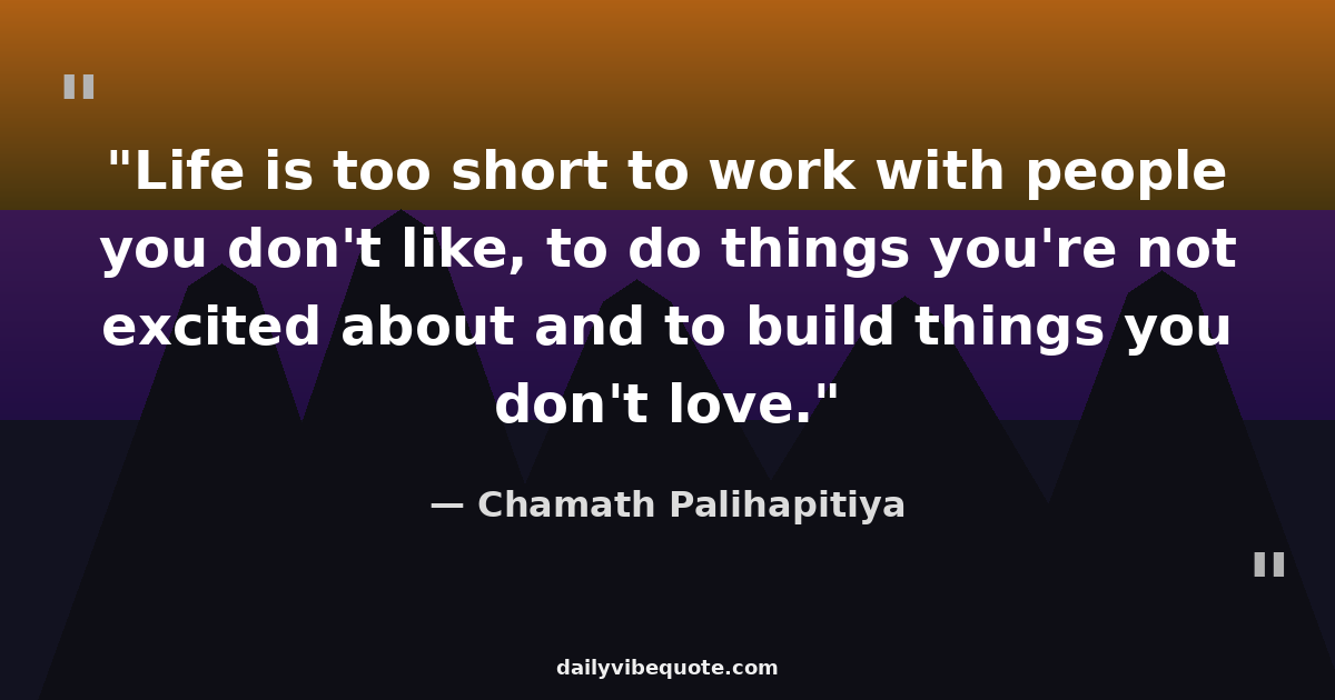 "Life is too short to work with people you don't like, to do things you're not excited about and to build things you don't love."