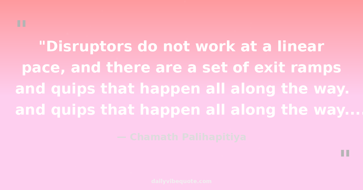 "Disruptors do not work at a linear pace, and there are a set of exit ramps and quips that happen all along the way. Reevaluate, change, reinvest in yourself, and never stay the same."