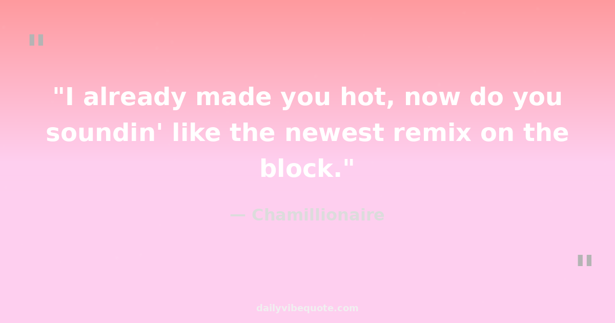 "I already made you hot, now do you soundin' like the newest remix on the block."