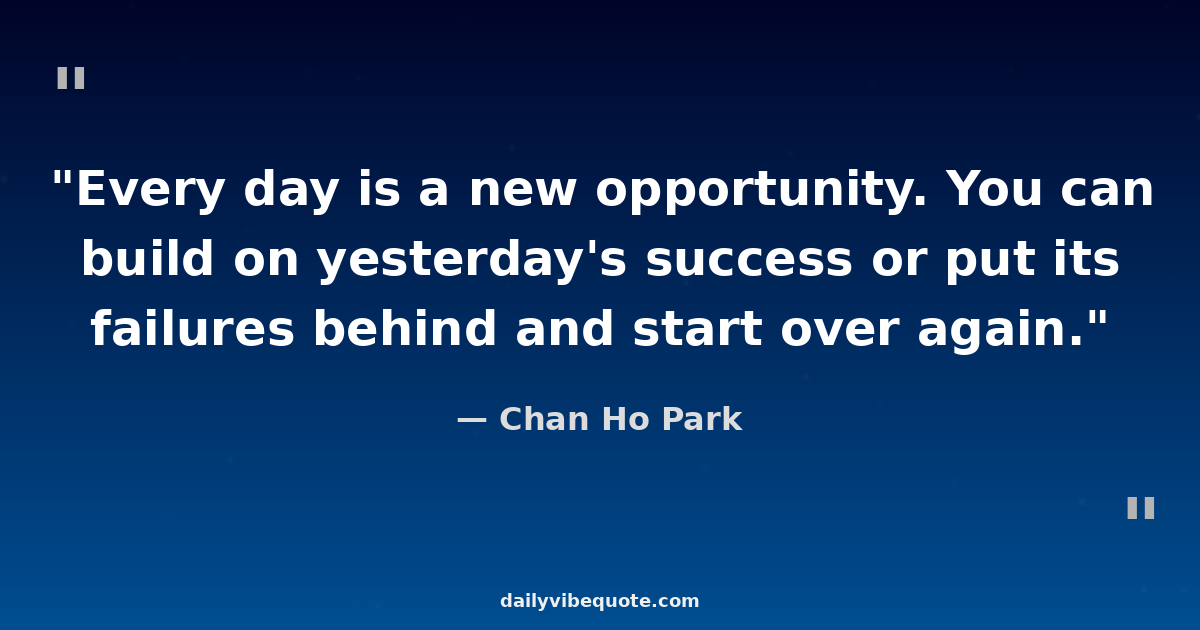 "Every day is a new opportunity. You can build on yesterday's success or put its failures behind and start over again."