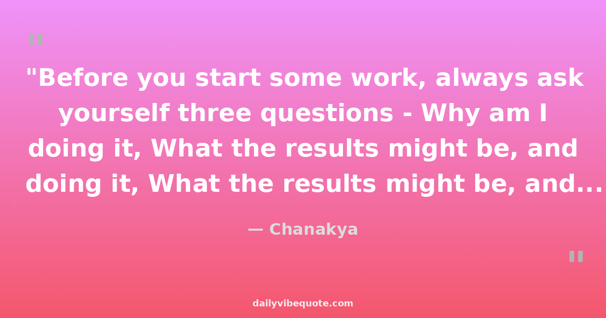 "Before you start some work, always ask yourself three questions - Why am I doing it, What the results might be, and Will I be successful. Only when you think deeply and find satisfactory answers to these questions, go ahead."