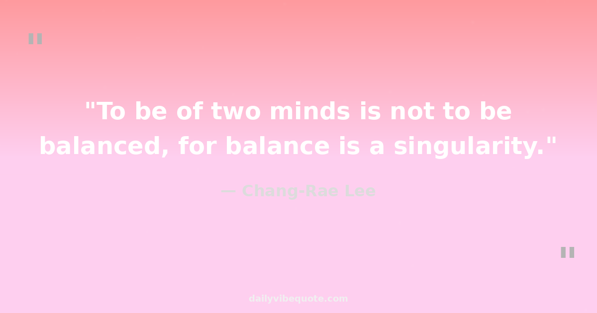 "To be of two minds is not to be balanced, for balance is a singularity."