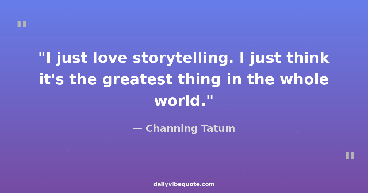 "I just love storytelling. I just think it's the greatest thing in the whole world."