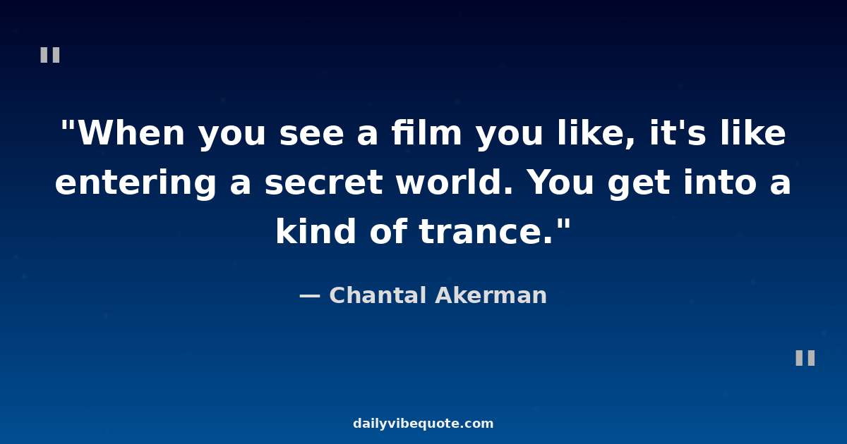 "When you see a film you like, it's like entering a secret world. You get into a kind of trance."