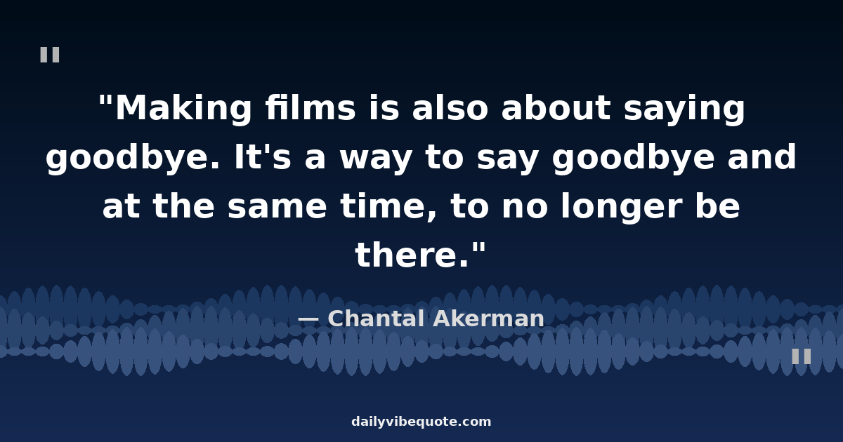 "Making films is also about saying goodbye. It's a way to say goodbye and at the same time, to no longer be there."