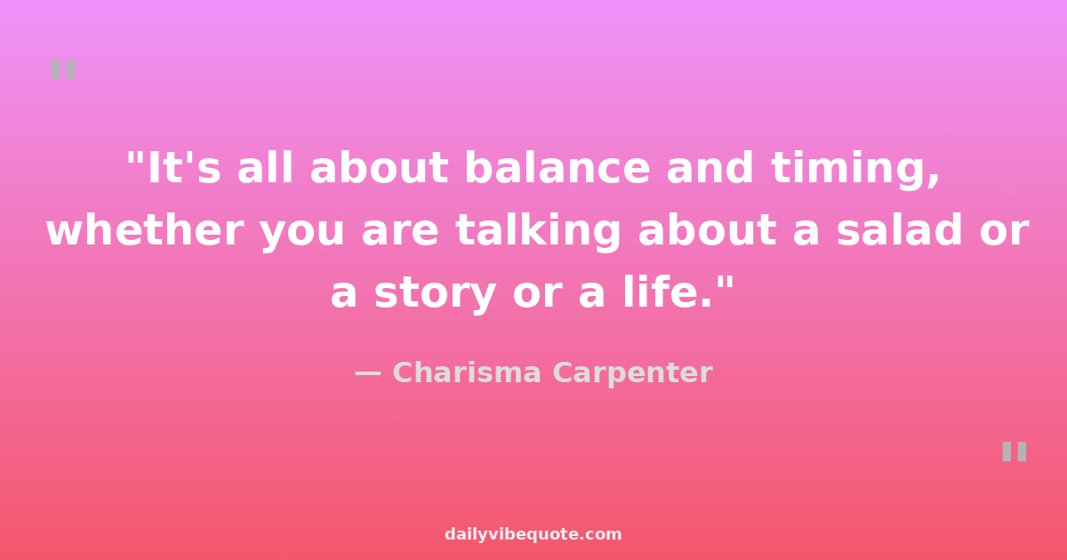 "It's all about balance and timing, whether you are talking about a salad or a story or a life."