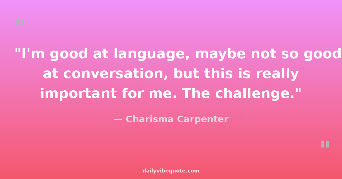 "I'm good at language, maybe not so good at conversation, but this is really important for me. The challenge."