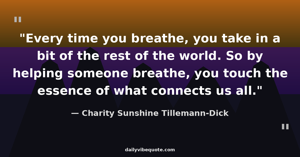 "Every time you breathe, you take in a bit of the rest of the world. So by helping someone breathe, you touch the essence of what connects us all."