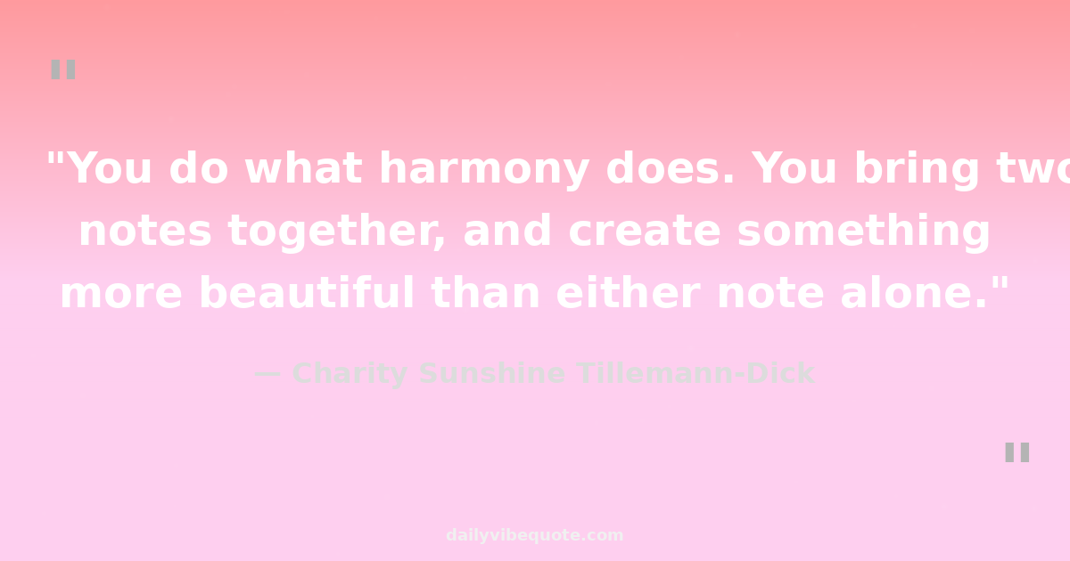 "You do what harmony does. You bring two notes together, and create something more beautiful than either note alone."