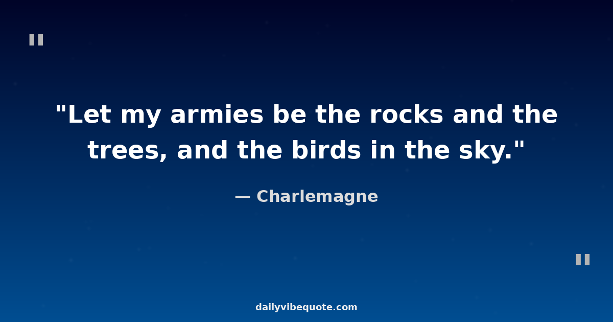 "Let my armies be the rocks and the trees, and the birds in the sky."