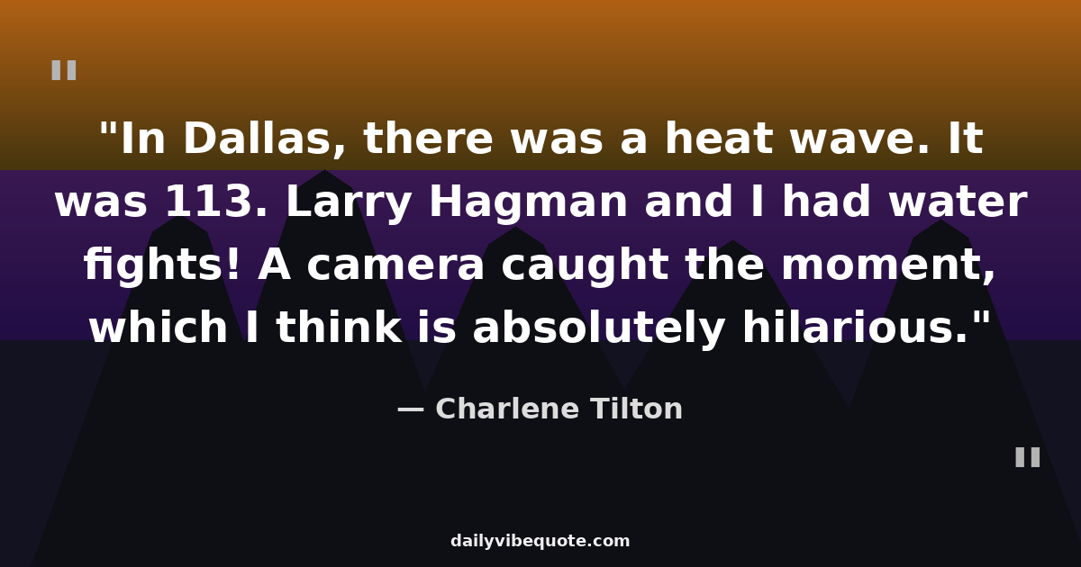 "In Dallas, there was a heat wave. It was 113. Larry Hagman and I had water fights! A camera caught the moment, which I think is absolutely hilarious."