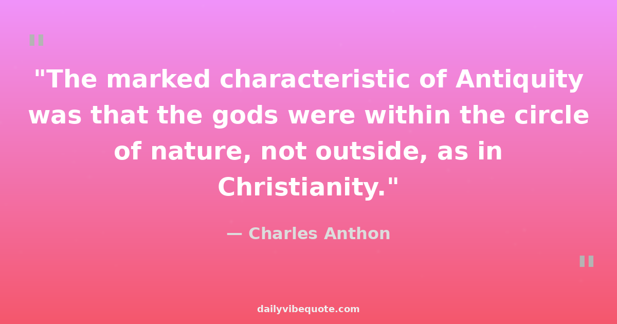 "The marked characteristic of Antiquity was that the gods were within the circle of nature, not outside, as in Christianity."