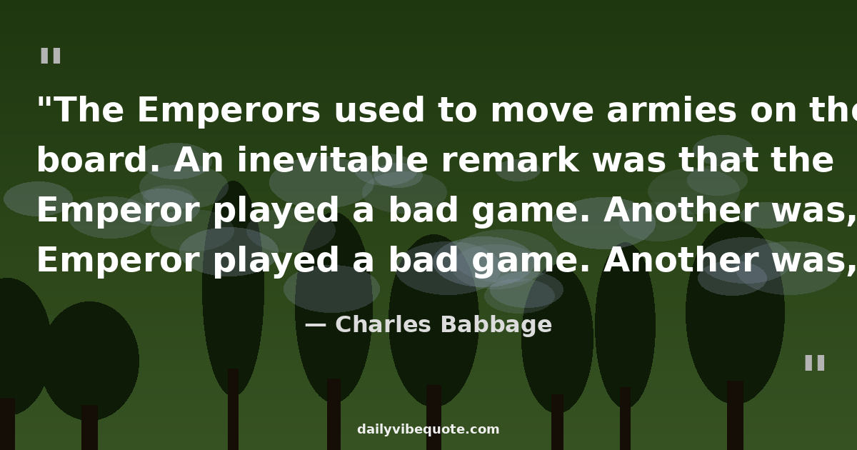 "The Emperors used to move armies on the board. An inevitable remark was that the Emperor played a bad game. Another was, that he had lost a great opportunity by not moving a particular corps d'armée of which they would mention the name. It was said at the time that if he had moved this particular corps d'armée he would infallibly have won the battle reported; that if he had done so in the previous battle he must have advanced to the capital and been proclaimed Emperor."