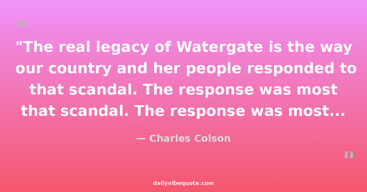 "The real legacy of Watergate is the way our country and her people responded to that scandal. The response was most encouraging. It sent an unmistakable message to the world that we would not and did not tolerate abuse of power at the highest levels of government."