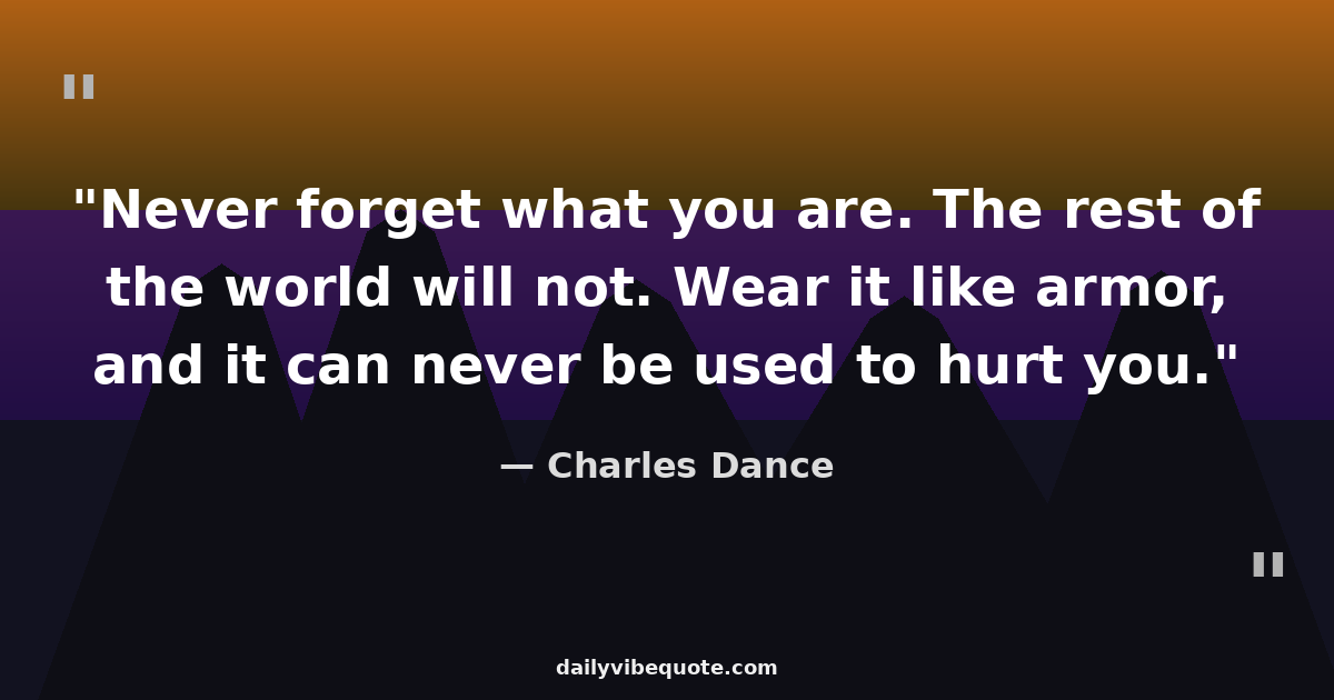 "Never forget what you are. The rest of the world will not. Wear it like armor, and it can never be used to hurt you."