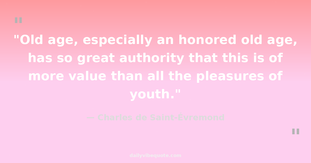 "Old age, especially an honored old age, has so great authority that this is of more value than all the pleasures of youth."